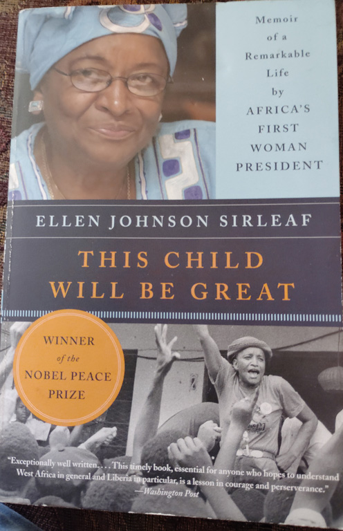 I always have too many books going at once, and once in a while I put off reading a book that I really, really should have read far sooner. Many years ago when I was still teaching middle school, I had the privilege of teaching the granddaughter of Ellen Johnson Sirleaf, the president of Liberia, and the first woman president in Africa. My student gifted me with her grandmother’s autobiography, This Child Will Be Great, signed by the author while she was in Norway to receive the Nobel Peace Prize.