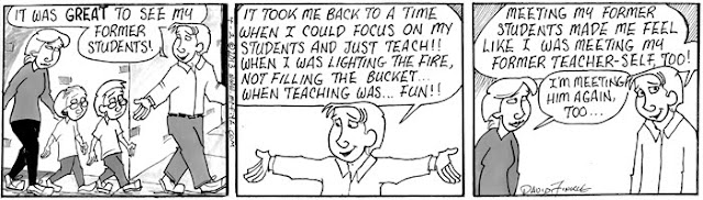 The series of comic strips I have assembled below, is, at least for me, the most important series I have ever done. Drawing it meant I was past the events that inspired it. More importantly, I think drawing it may have helped some other teachers who have felt the same way I did know they were not alone.