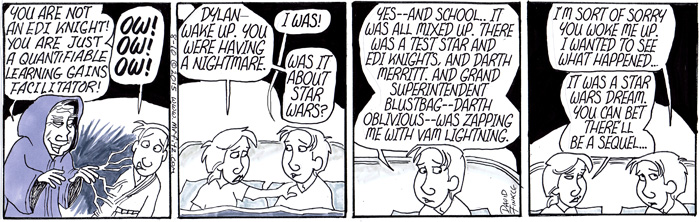 I needed to set up Mr. Fitz’s “dream sequence,” but once I did, the series almost wrote itself. I ran the first part this past summer, and the second part wrapped up today. My hope is that we can defeat this evil “Ed-pyre” that has set out to destroy our schools.