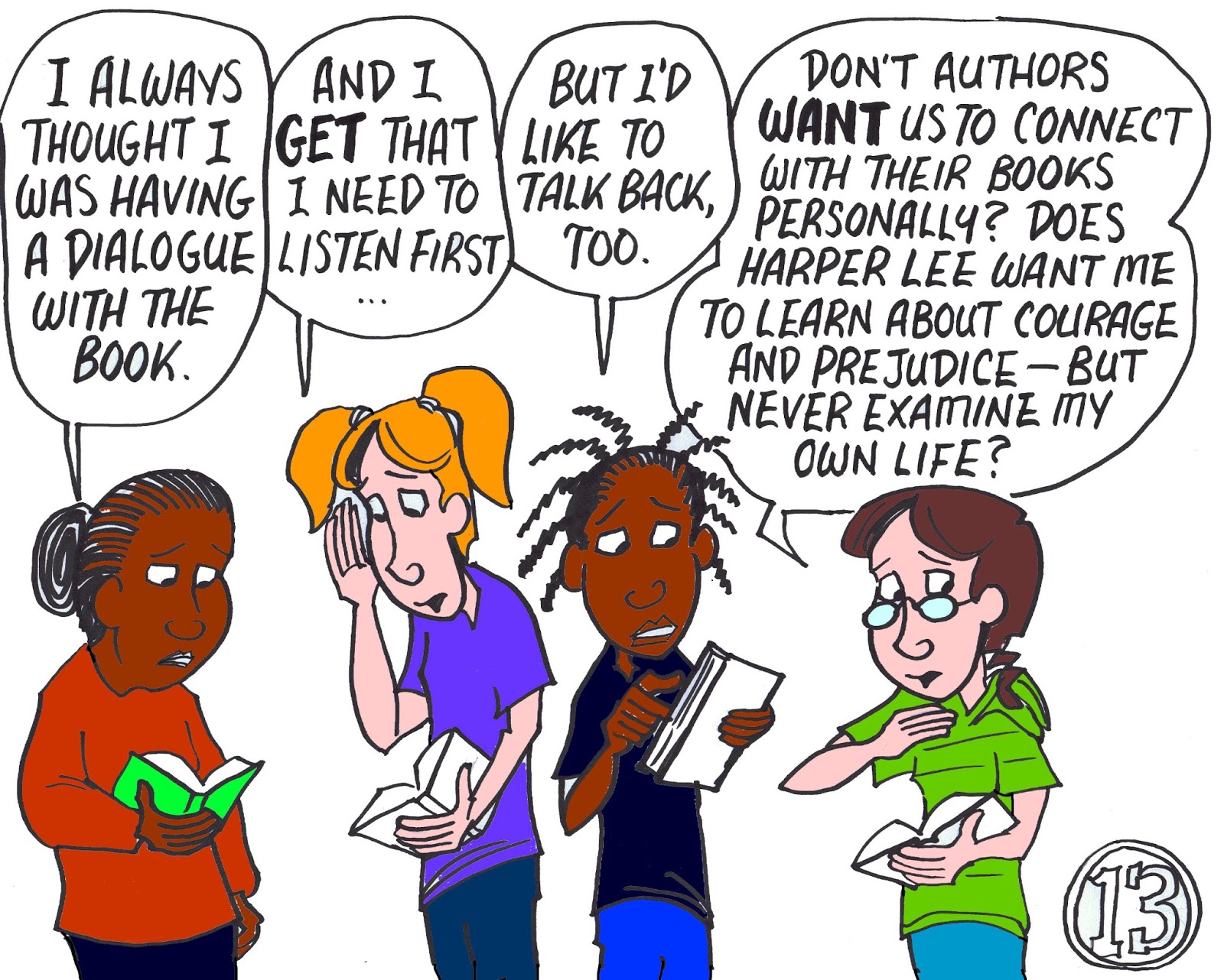 So this emphasis on “text-dependent questions” depressed me. Do I want my students to understand the text? You bet. There is a place for digging in and reading a text and investigating and appreciating, and marveling at what a writer did. I do that. But to say that is the main thing we are to do as readers, to say that going outside the “four corners of the text” is bad, is like saying that reading is an isolated, dead activity without passion, influence, or purpose. We read to appreciate the text, and that’s that. It shouldn’t affect us, it shouldn’t change the world, it shouldn’t make us better people. The Common Core grudgingly says that maybe students can go beyond the text after we’re sure they’ve completely understood it, but it seem like an after thought, a concession they’d rather not make.