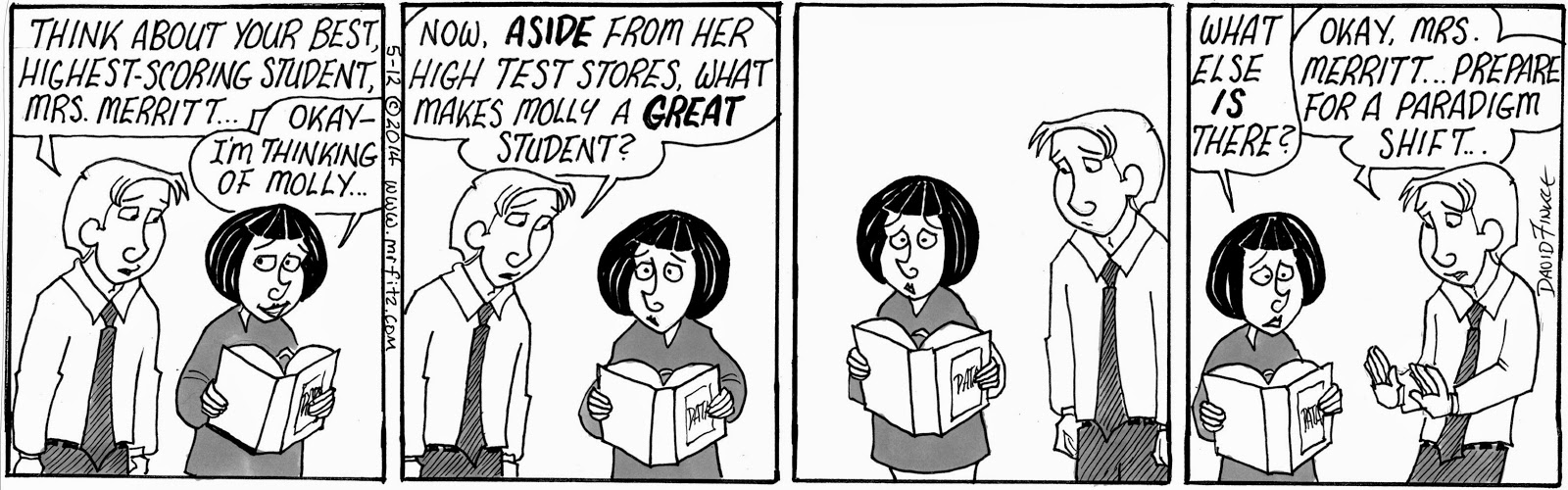 If someone tells you they don’t understand what teachers and parents and students have against standardized testing, then send them here. Mr. Fitz will straighten them out… maybe. (He doesn’t seem to get very far with the utterly clueless Mrs. Merritt…)