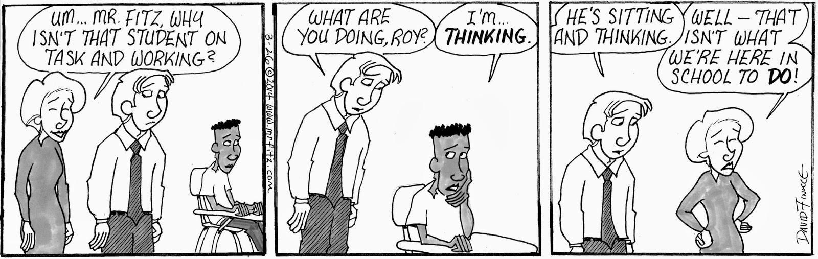 School should be a place for thought. That seems obvious. Thinking should be the main thing going on in schools. As Daniel Willingham points out in his book, Why Don’t Students Like School?, students learn about what they think about, so we should be trying to get them to engage in thinking as often as possible.