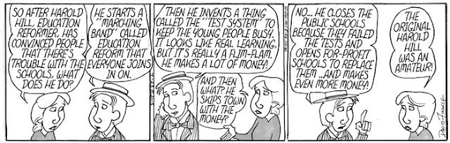 Reformers keep creating trouble, and each solution they create makes them more money and gives them more power over the public school system. Your local school is too focused on test prep? Well, with school choice, you can take your money to a charter school that doesn’t suffer under all those terrible mandates that the public schools do!